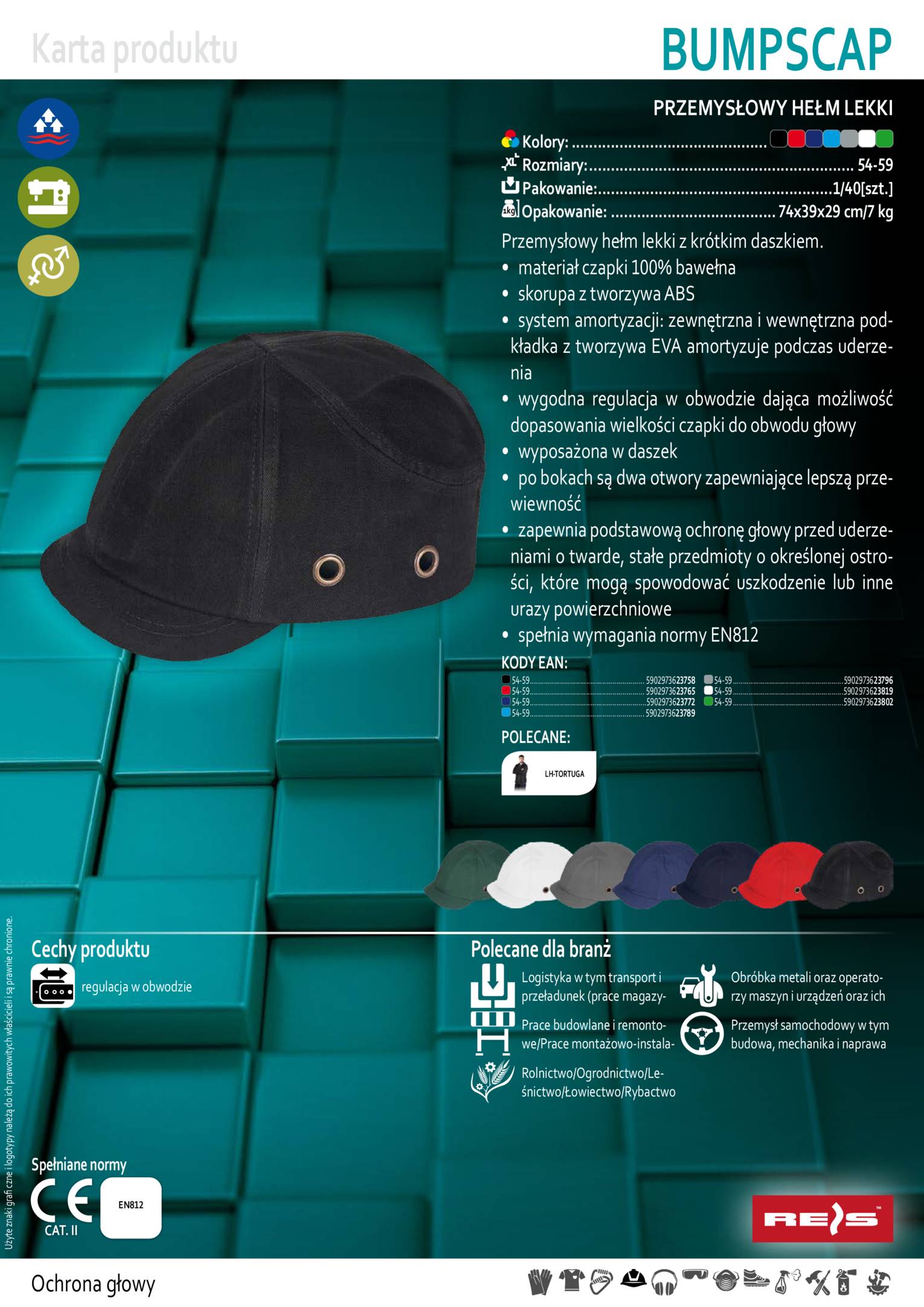 To przemysłowy hełm ochronny, który jest lekki i posiada krótki daszek. Skorupa hełmu jest wykonana z tworzywa ABS, a po bokach posiada otwory zapewniające lepszą wentylację. Wyposażony w system amortyzacji EVA, który amortyzuje podczas uderzenia oraz regulację w obwodzie, dzięki której można dopasować czapkę.